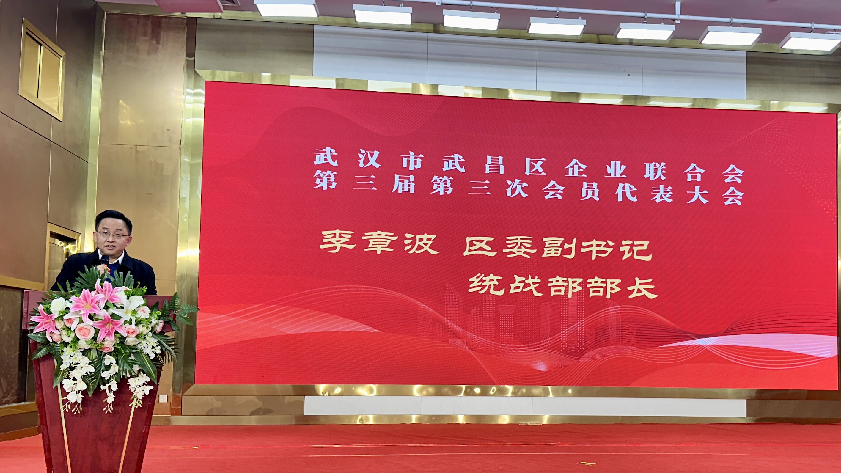 李章波代表武昌区委、区政府对武昌区民营经济和民营经济人士对武昌区经济社会发展所作的贡献给予充分肯定,对年会的召开表示热烈的祝贺,向与会的企业家朋友并通过与会的企业家朋友向全区广大民营经济人士和关心支持民营经济发展的各界人士,致以诚挚的问候和新年的祝福!他表示,新的一年,期盼广大民营企业能够抓住历史机遇,坚定发展信心,凝聚发展斗志,实现新的跨越和发展,为中国式现代化武昌实践作出更大贡献。